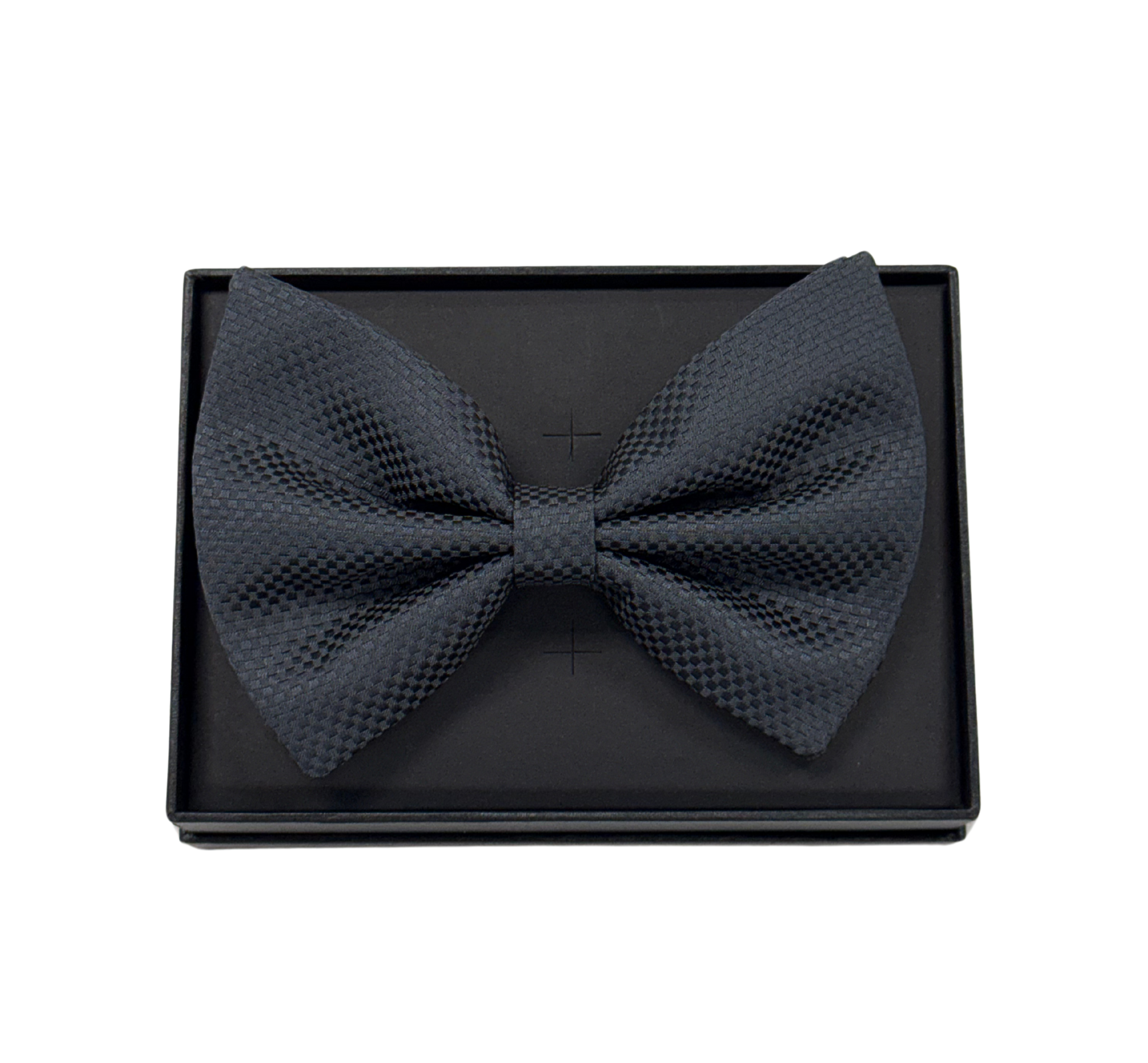 Charcoal bow tie crafted in a tonal textured weave for a modern, understated finish. Matte fabric with a structured silhouette and adjustable strap for a tailored fit.