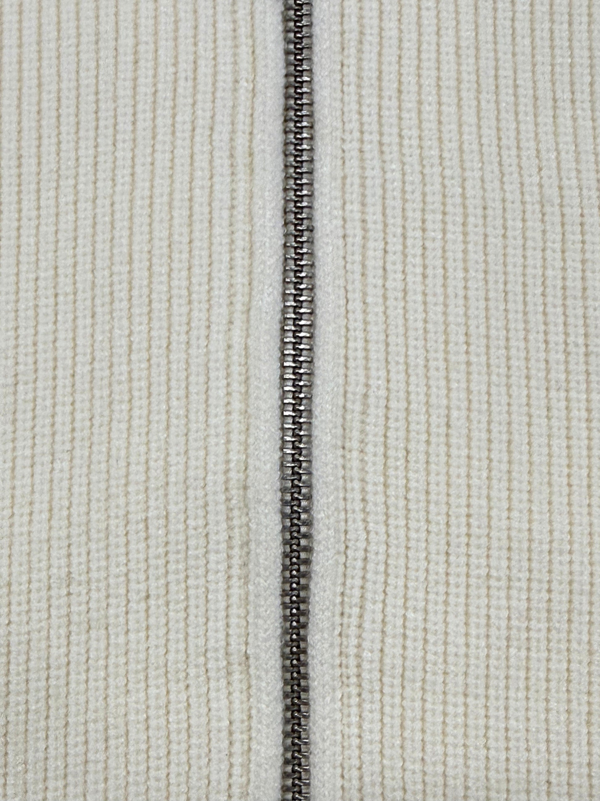 A ribbed wool-cotton knit with a refined double-zip front. Lightweight yet structured, it’s designed for effortless layering and timeless versatility.