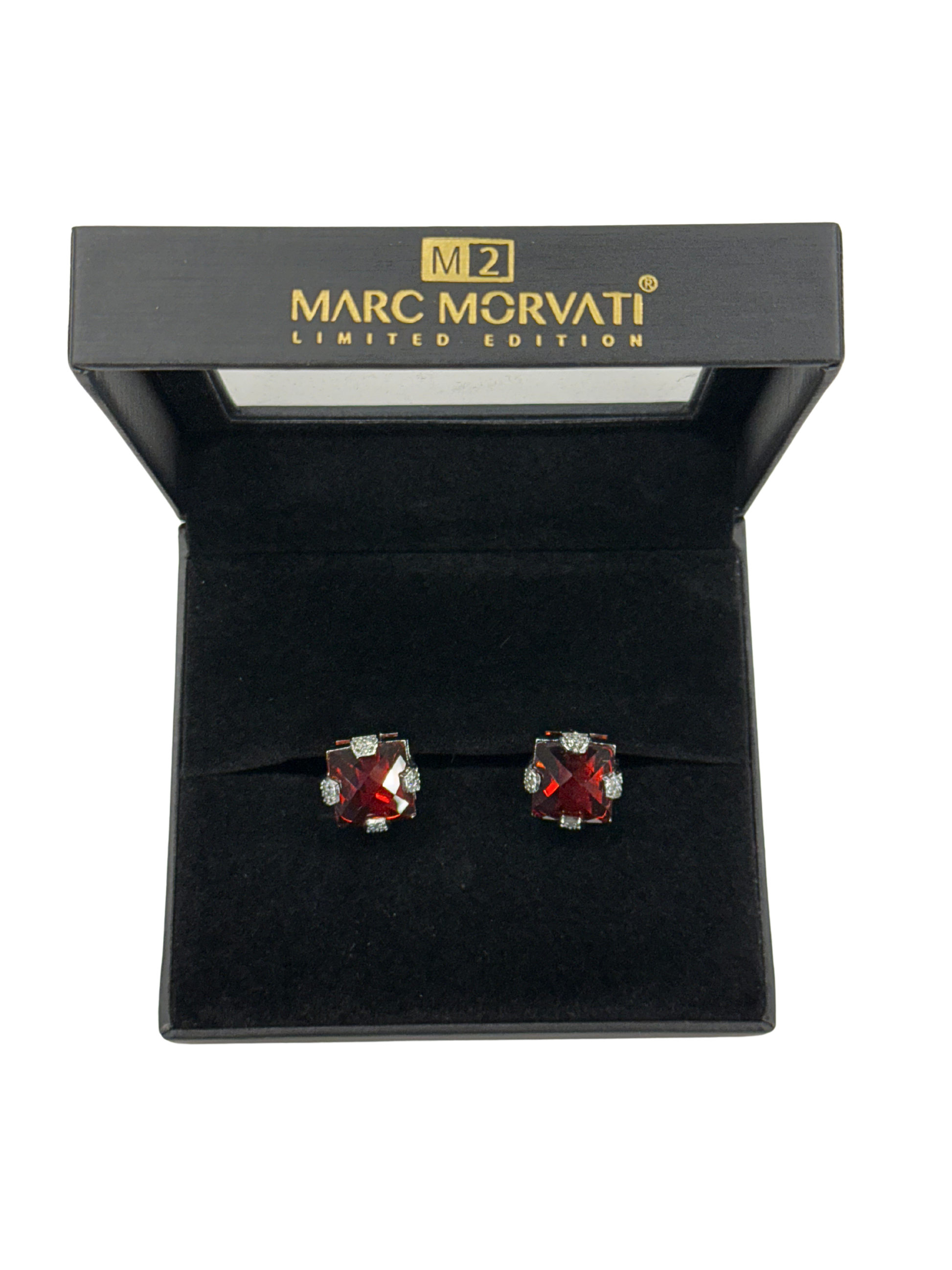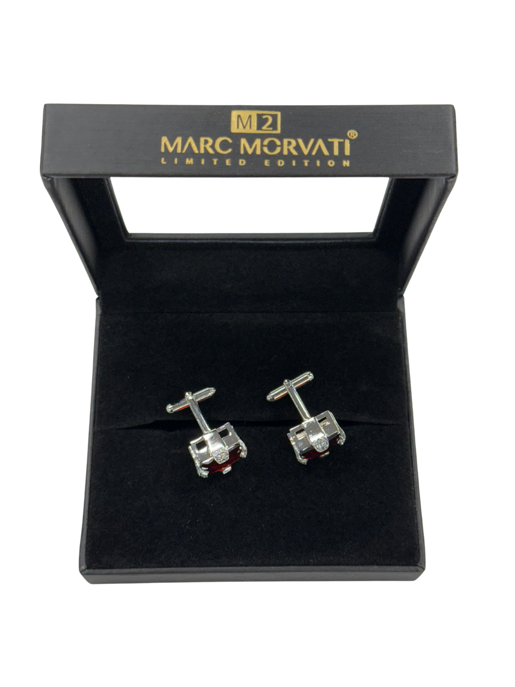 Deep crimson center stone framed by crystal-set prongs. Clean lines, polished silver tone, and a smooth toggle for easy wear. A sleek accent for formal dressing.