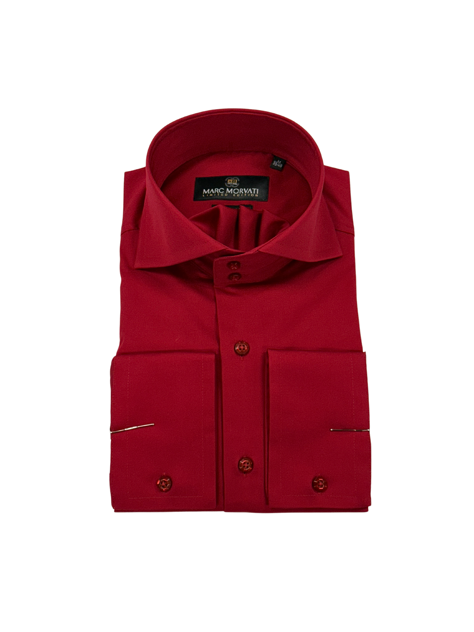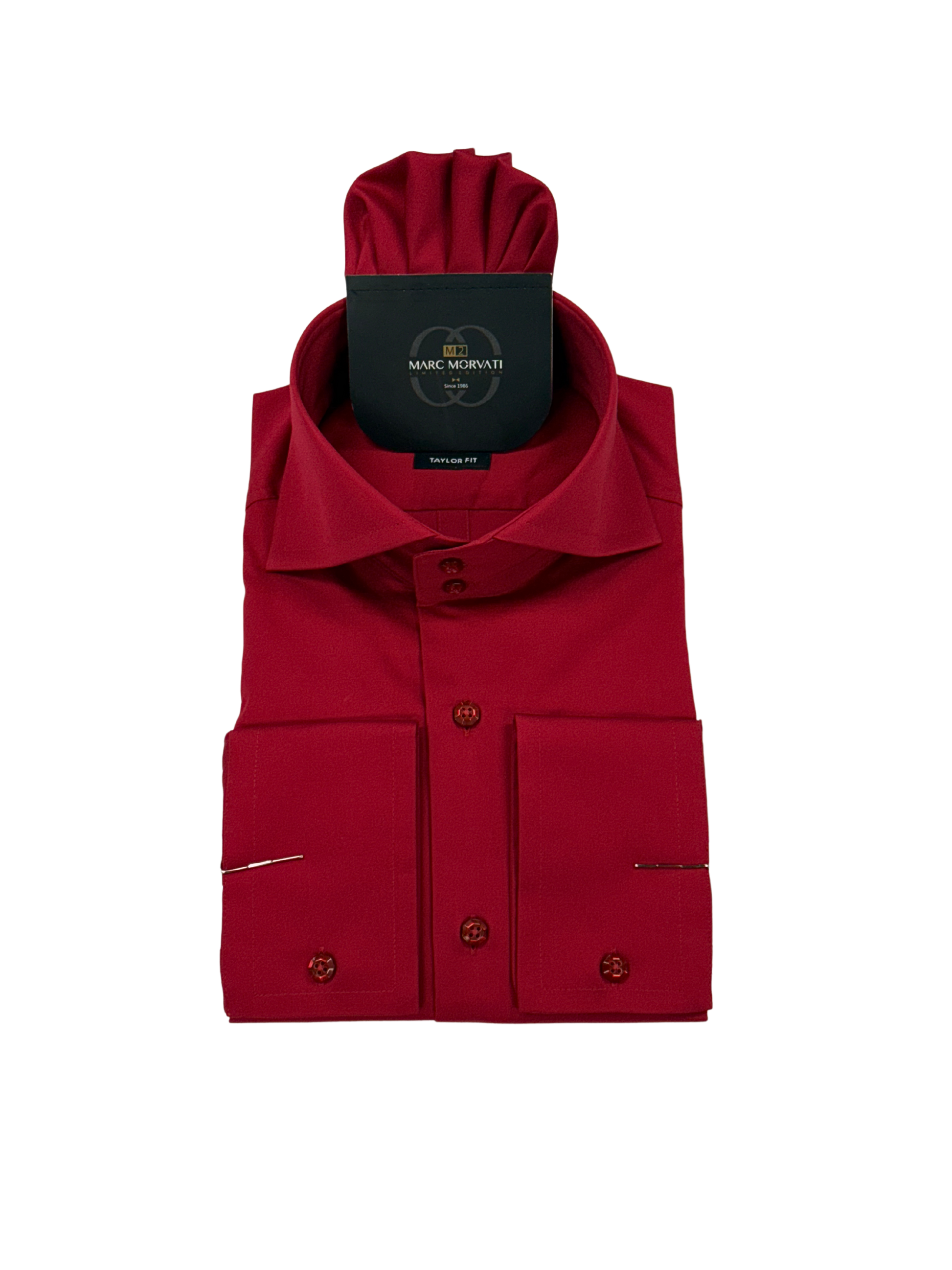 Crafted from 100% premium cotton, this crimson dress shirt features tonal button accents and a tailored spread collar. Includes a matching pocket square for a polished, modern look.