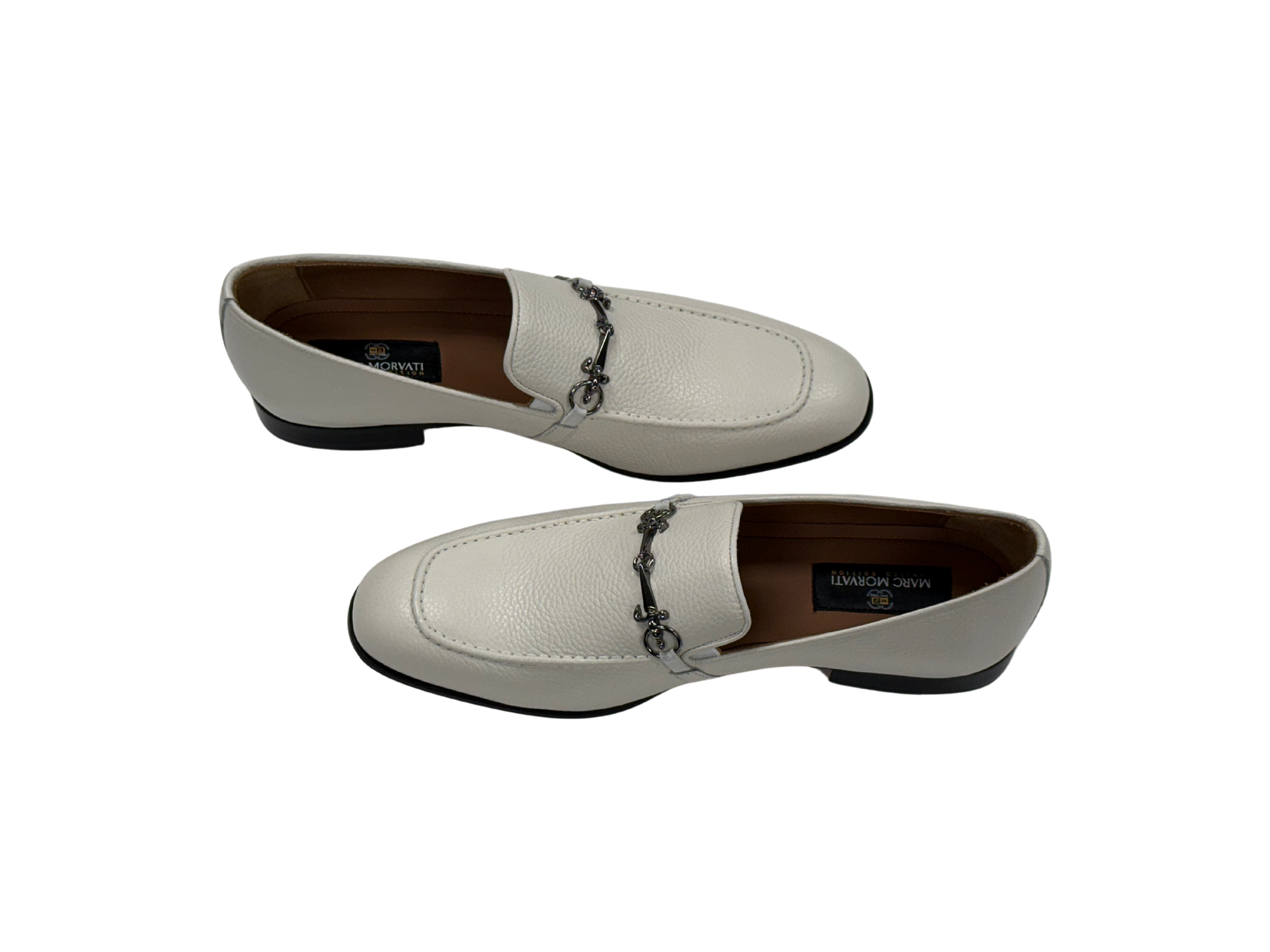 Made in Italy from 100% premium leather with a natural grain finish, these loafers feature a sleek metal accent and a refined silhouette. The soft ivory tone adds subtle sophistication to any look, with comfort that lasts all day.