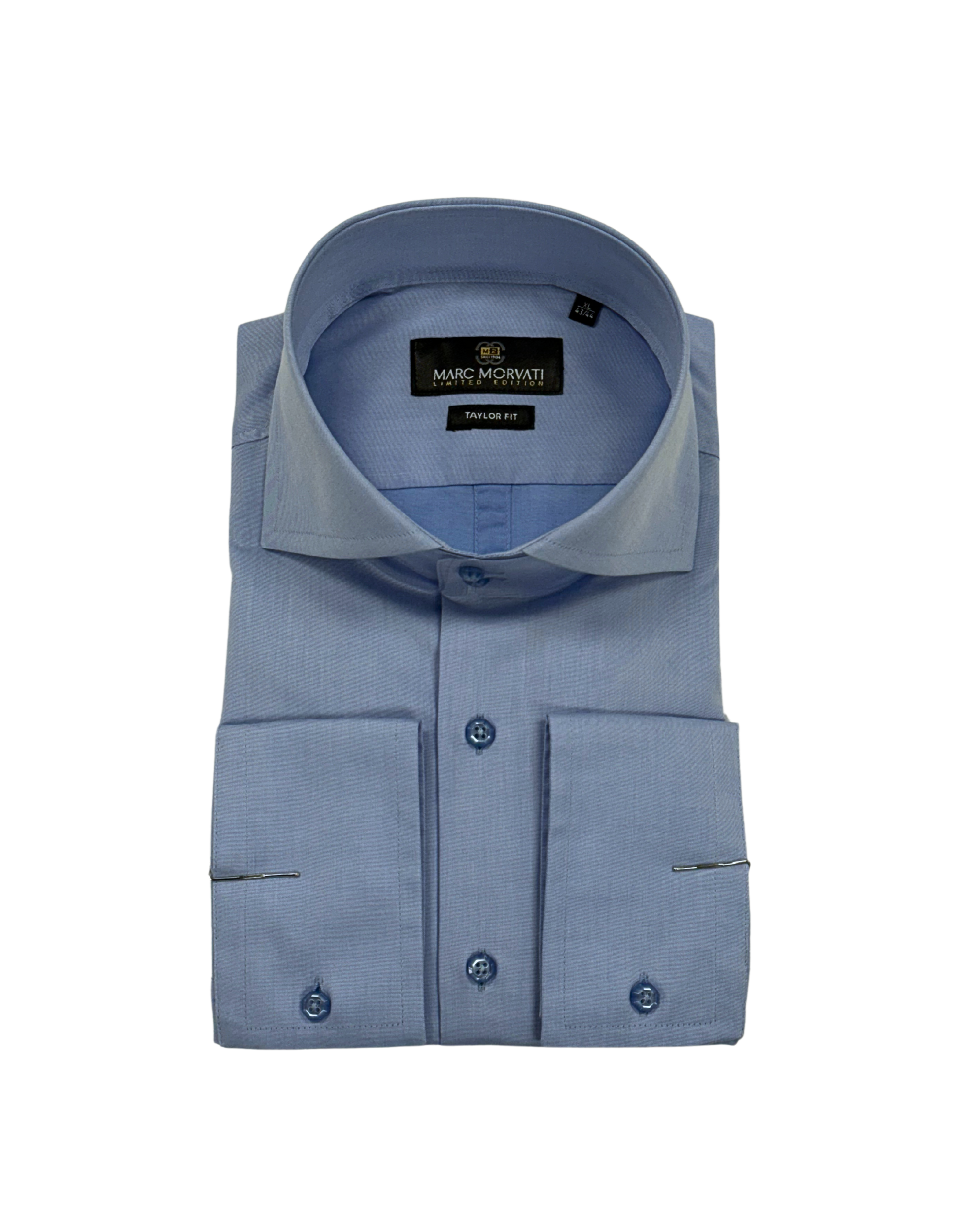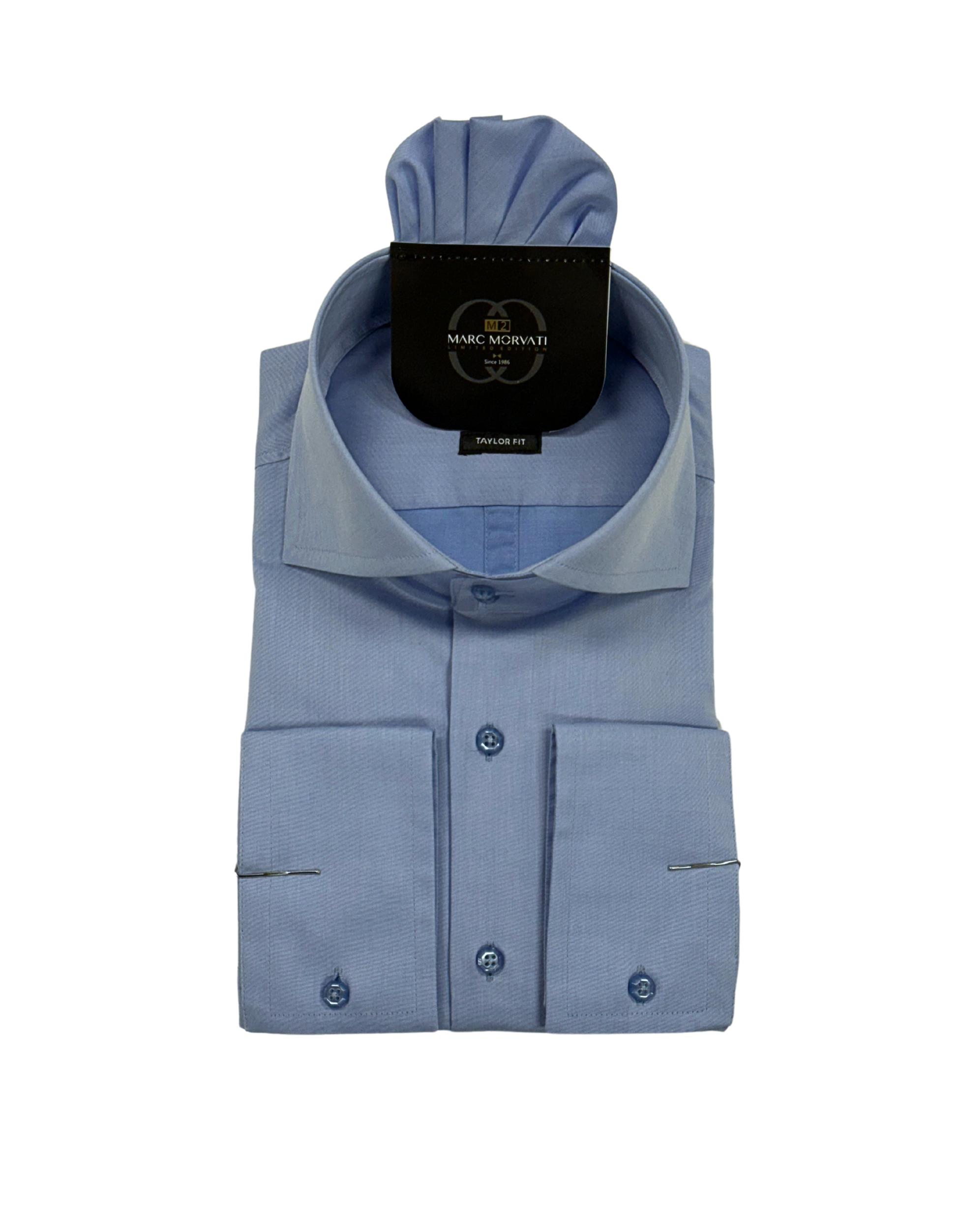 Crafted from 100% premium cotton, this light blue dress shirt features tonal button accents and a tailored spread collar. Includes a matching pocket square for a polished, modern look.