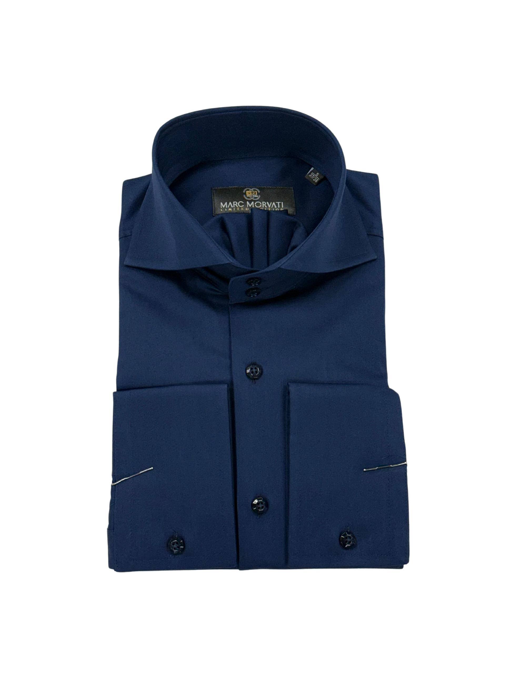 Crafted from 100% premium cotton, this midnight navy dress shirt features tonal button accents and a tailored spread collar. Includes a matching pocket square for a polished, modern look.