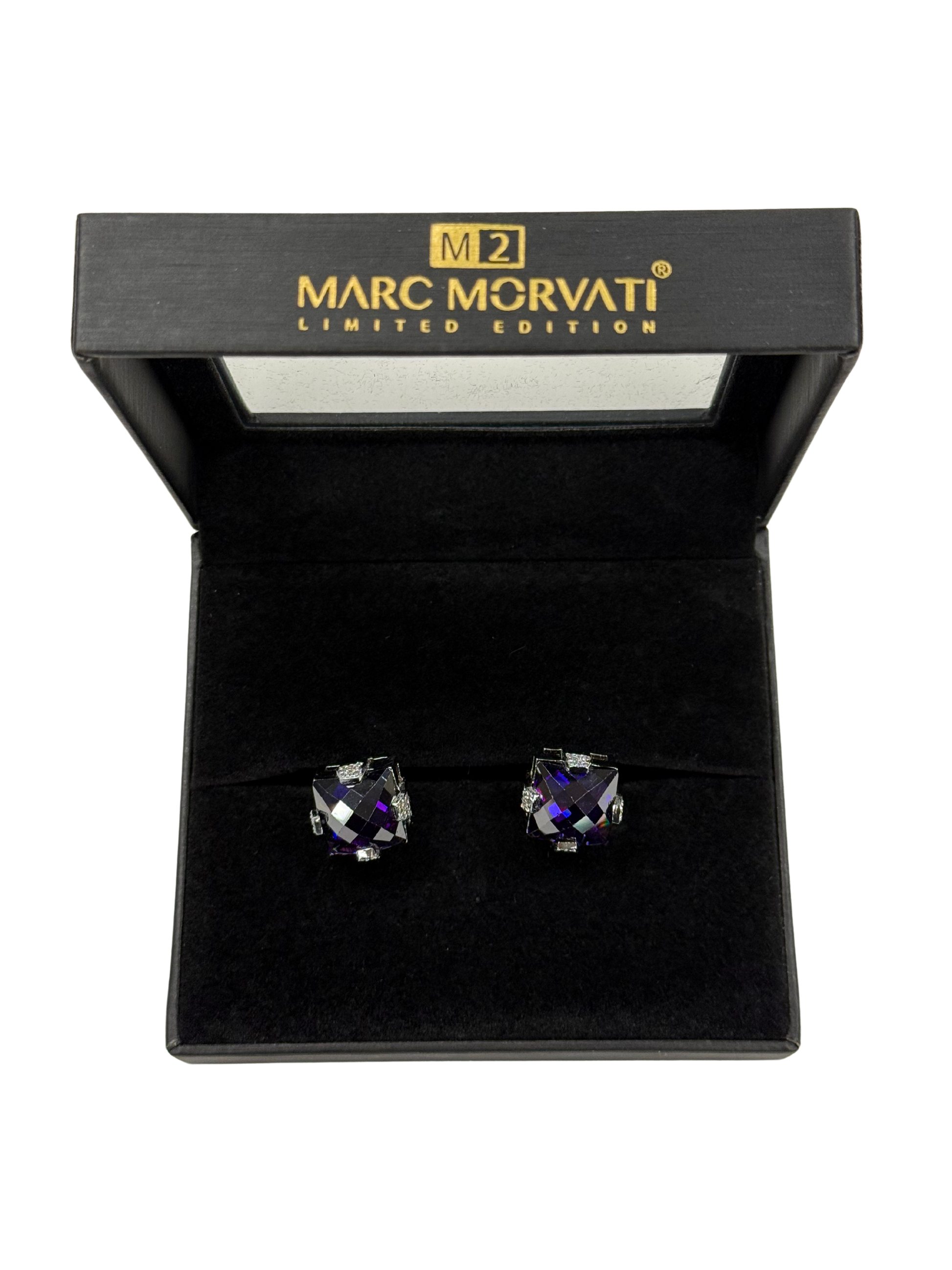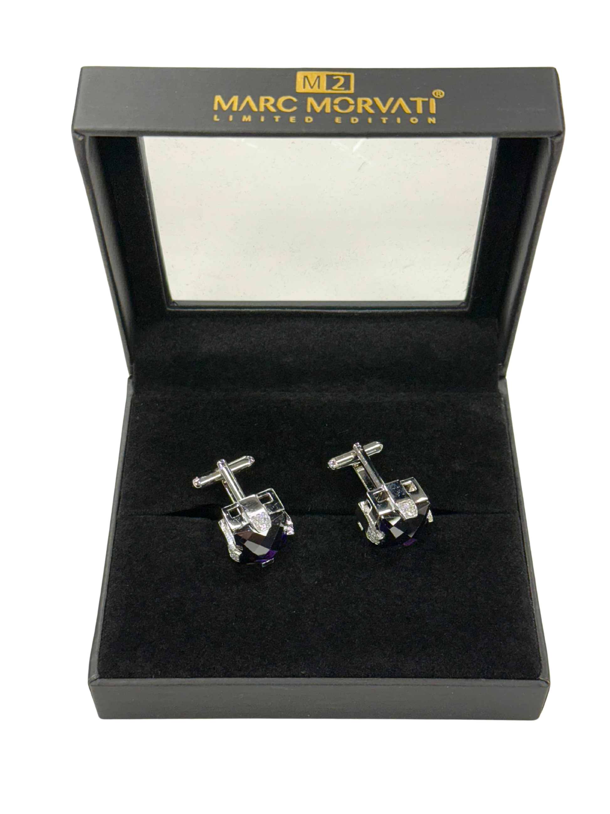 Deep violet-toned center stone framed by crystal-set prongs. Clean lines, polished silver tone, and a smooth toggle for easy wear. A refined accent for formal dressing.