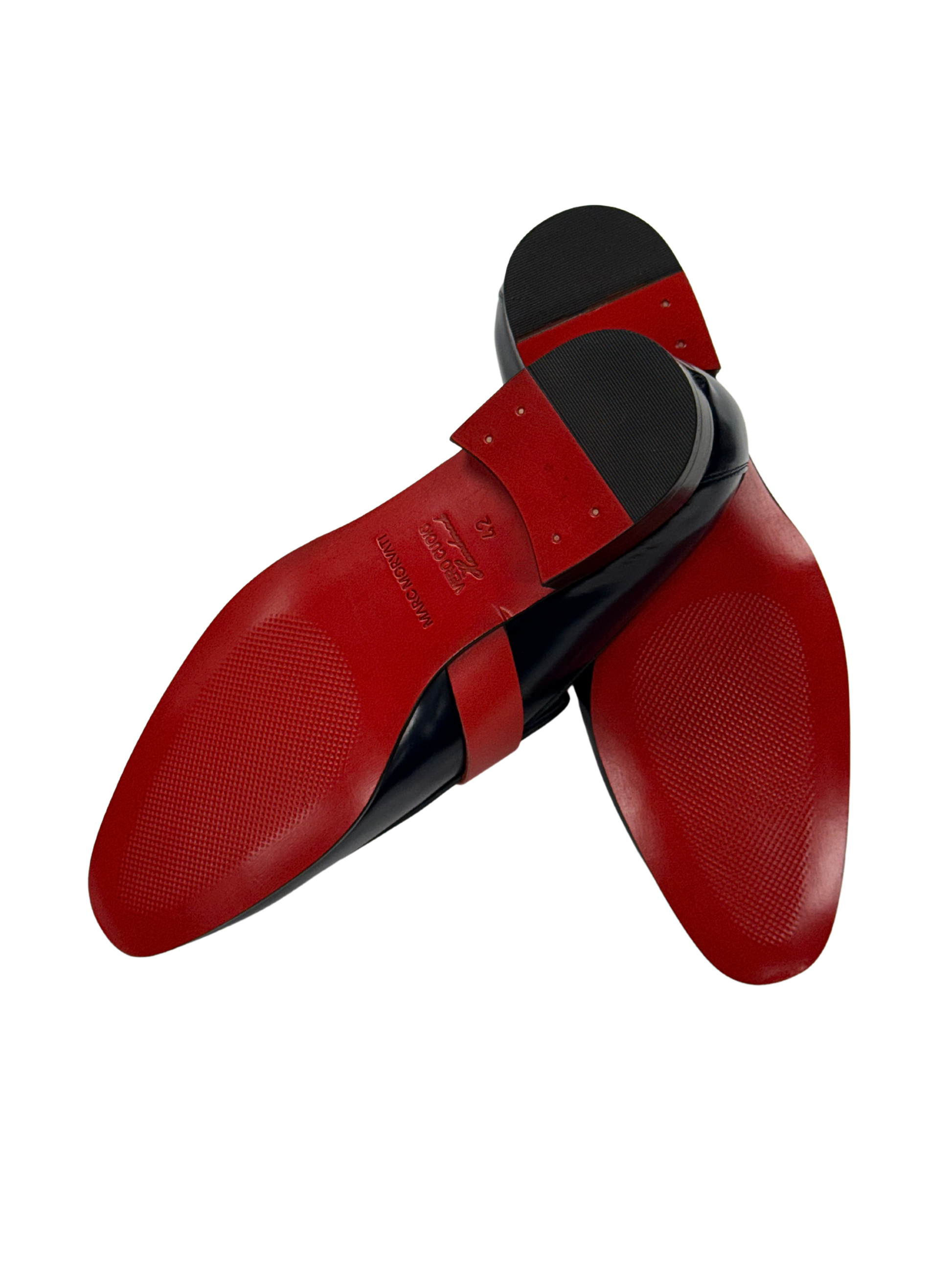 Crafted in Europe from 100% premium leather, these navy loafers feature a striking red and white strap detail with a polished metal ring. Sleek, structured, and built for confident summer style.