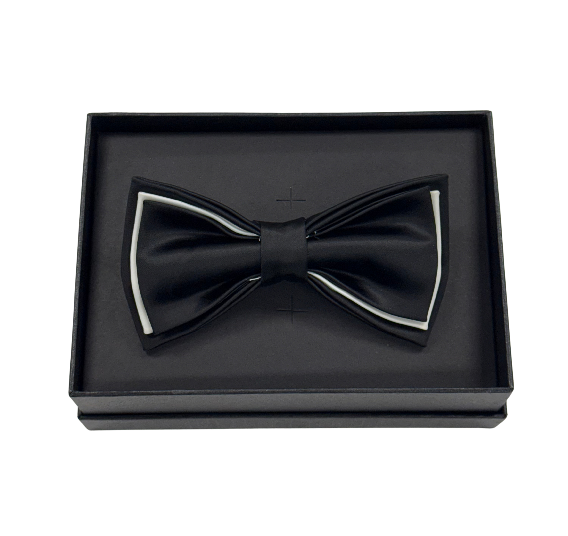 Satin-finish fabric outlined with crisp white and deep black trim. Sleek, sculpted, and refined in every detail. Finished with an adjustable strap for a tailored fit.