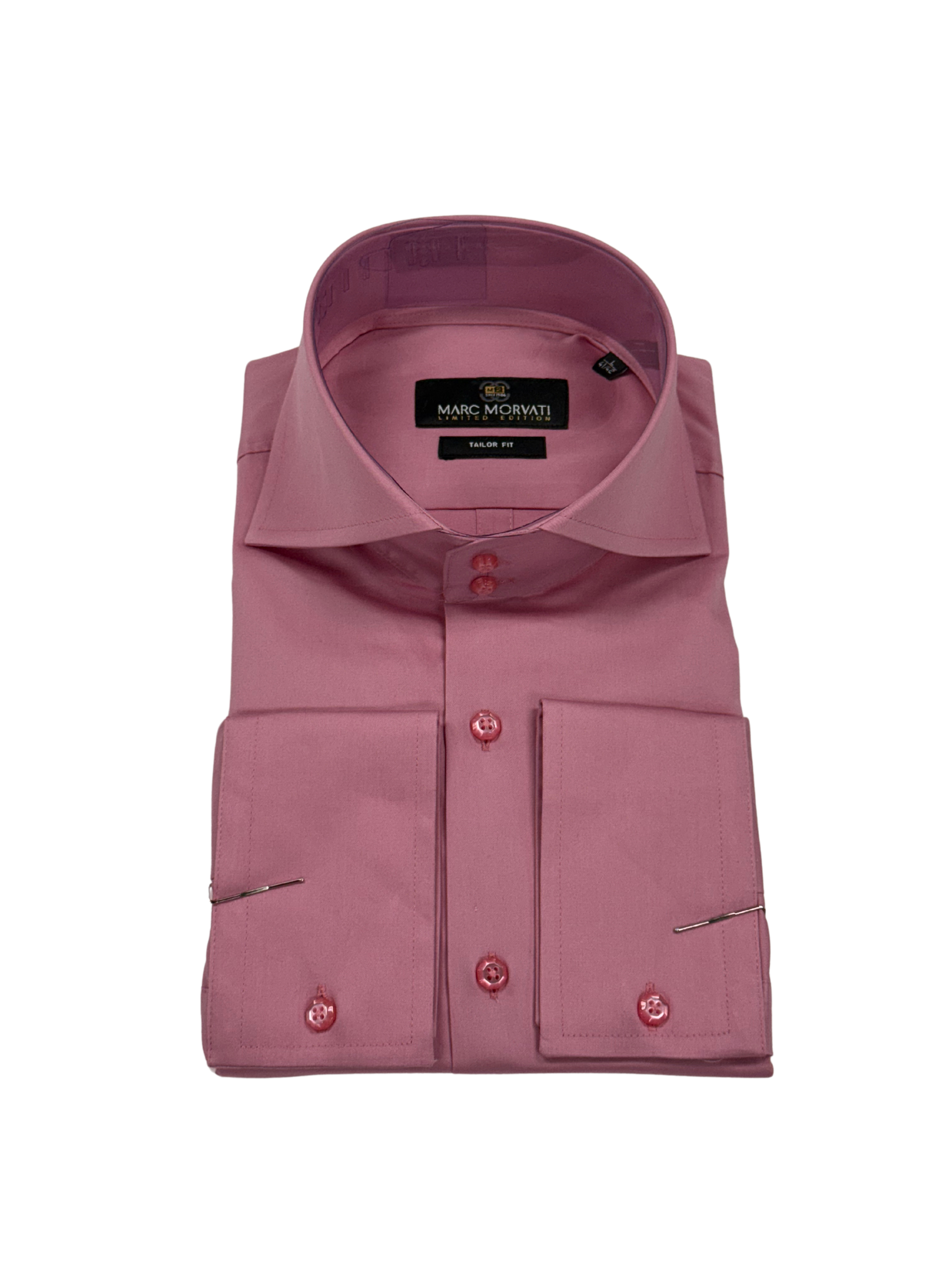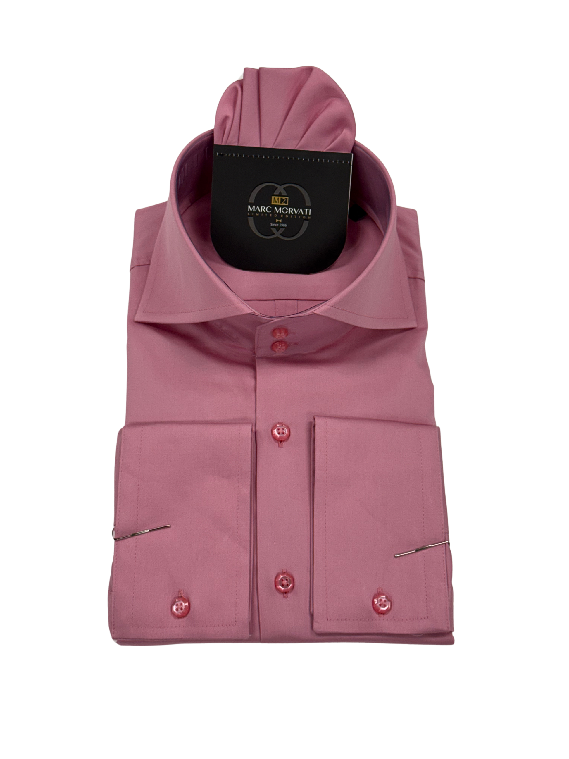 Crafted from 100% premium cotton, this rose pink dress shirt features tonal button accents and a tailored spread collar. Includes a matching pocket square for a polished, modern look.