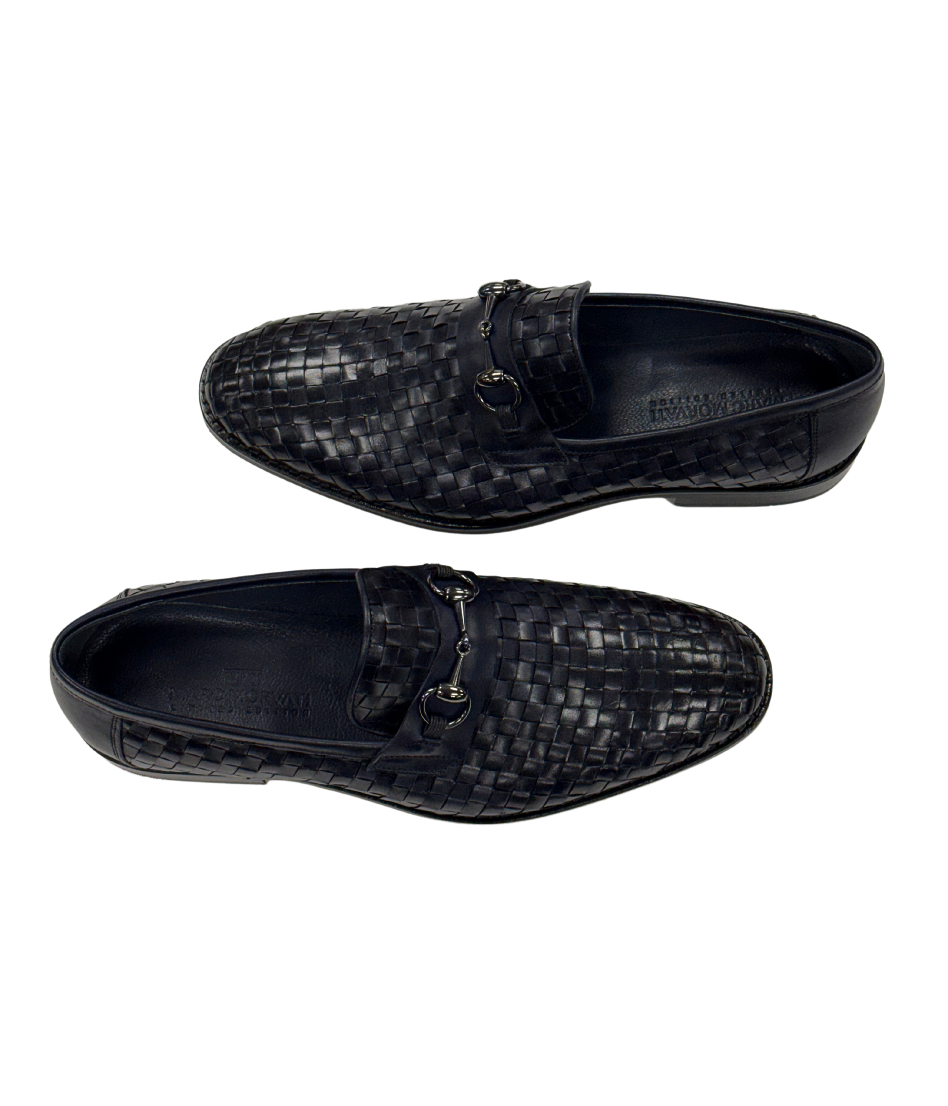 Crafted in Italy from 100% premium leather, these navy loafers feature an intricate woven upper, silver-tone horsebit detail, and a refined silhouette. The deep navy tone brings a modern twist to classic styling. Lightweight and flexible, they’re built for all-day comfort and effortless wear — from tailored looks to laid-back style.
